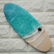 木製のサーフボード型にハワイを感じる海を流しました。