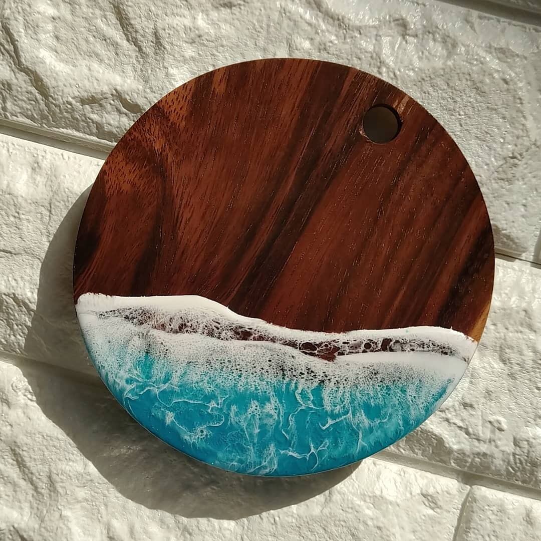 アカシア素材のミニボードにハワイを感じる海を流しました。