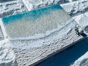 ホヌ(ウミガメの赤ちゃん)が卵からかえって海へ向かおうとしているところをイメージしました。