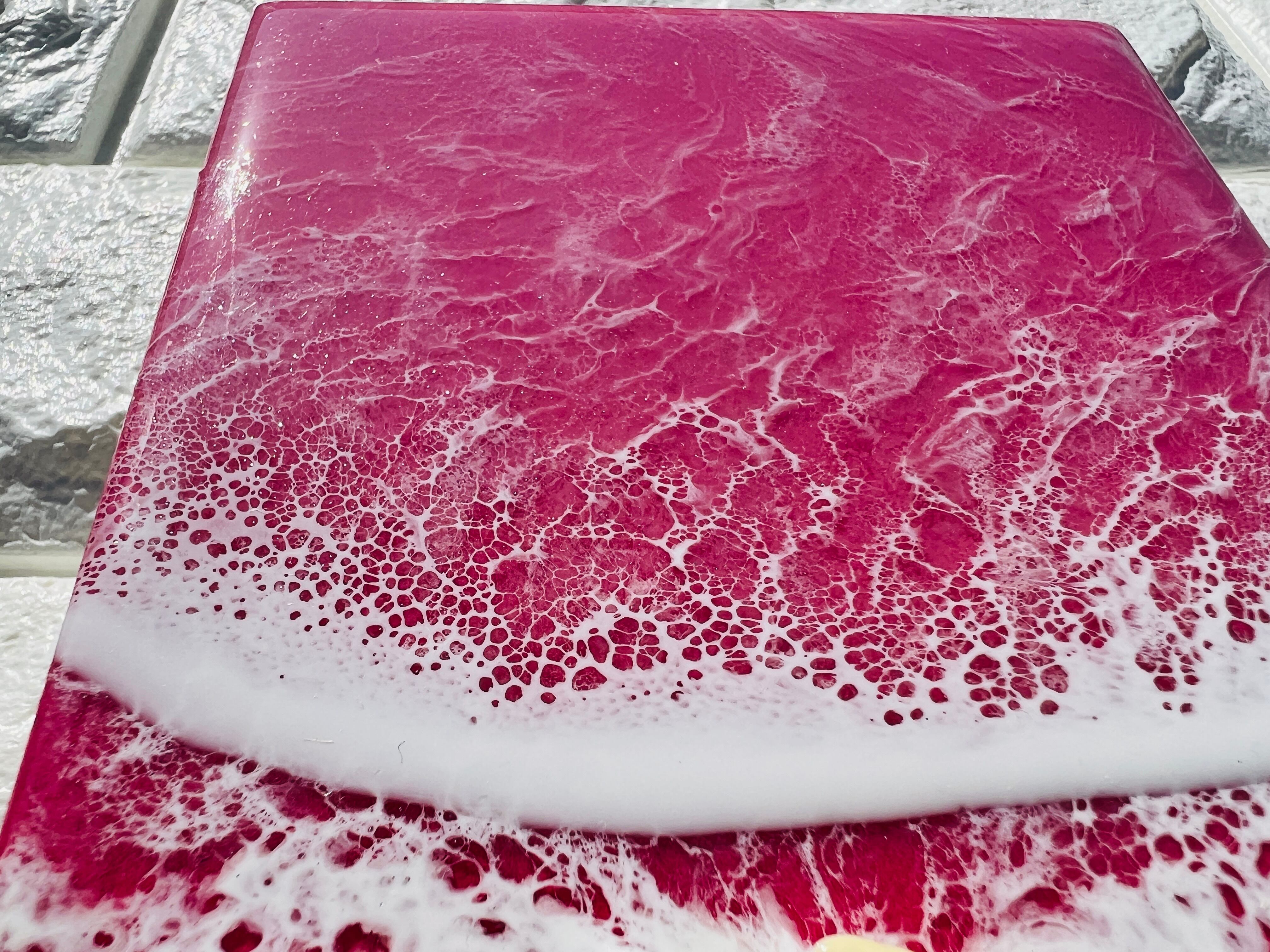 木製のパネルに貝殻を敷き詰めハワイの夜明けを感じる海を流しました。